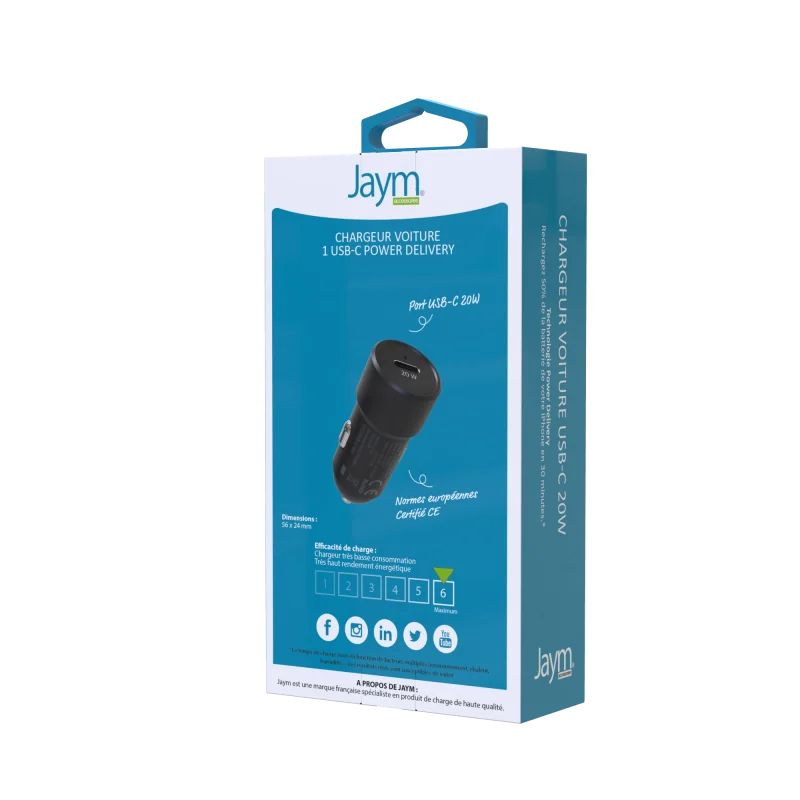Rechargez rapidement vos appareils lors de vos trajets avec ce chargeur secteur pour voiture USB-C 20W 3A 12/24V noir de JAYM. Adapté aux véhicules 12/24V, il délivre une puissance de 20W et un courant de 3A. Cet accessoire pratique permet de retrouver 50 % de la batterie en seulement 30 minutes. Compatible avec tous les appareils USB-C, il est particulièrement efficace sur l’iPhone 12. Étant conçu pour être compact, il trouvera facilement une place dans votre boîte à gants. Avec sa certification ROHS, ce chargeur secteur garantit une recharge rapide tout en respectant les normes de sécurité.